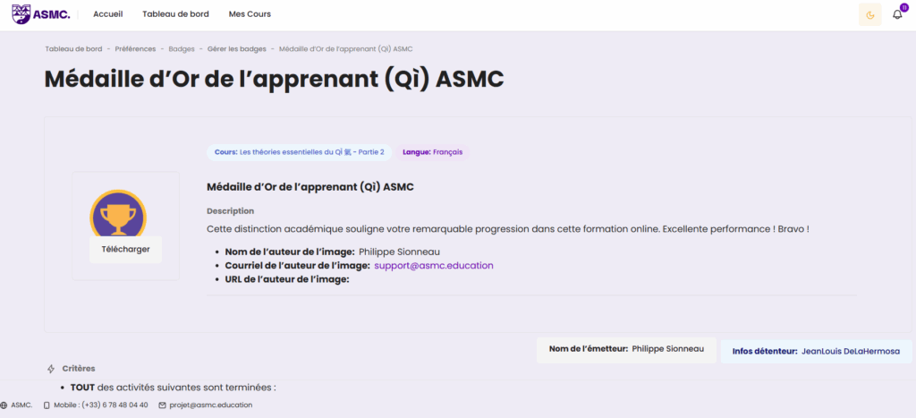 - Académie Supérieure de Médecine chinoise (ASMC) de Philippe SIONNEAU (tronc commun sur 2 années) depuis juillet 2025