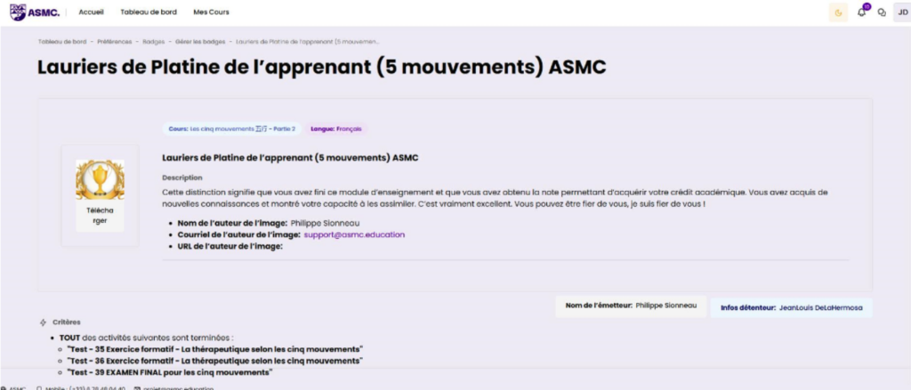 06 Janvier 2026_Validation module « Les organes extraordinaires » Lauriers platine 117sur 117pts